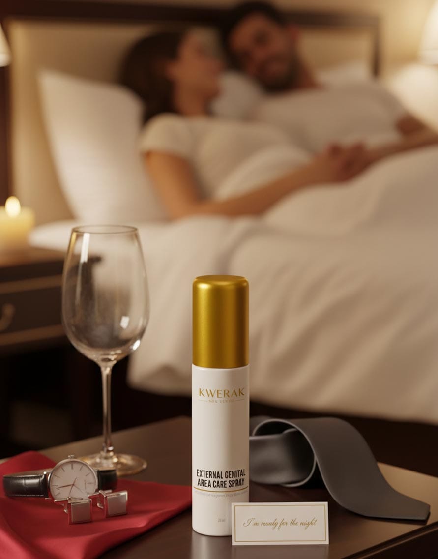 KWERAK geciktirici sprey 30 ml: dış genital bölgeye haricen uygulanır, yakınlık süresini yönetmeye destek olur. Pratik sprey başlık, hızlı ve kontrollü kullanım.